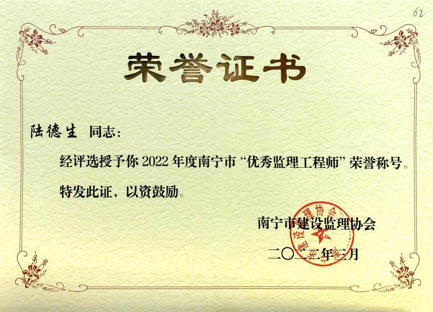 2022年度南寧市“優(yōu)秀總監理工程師”